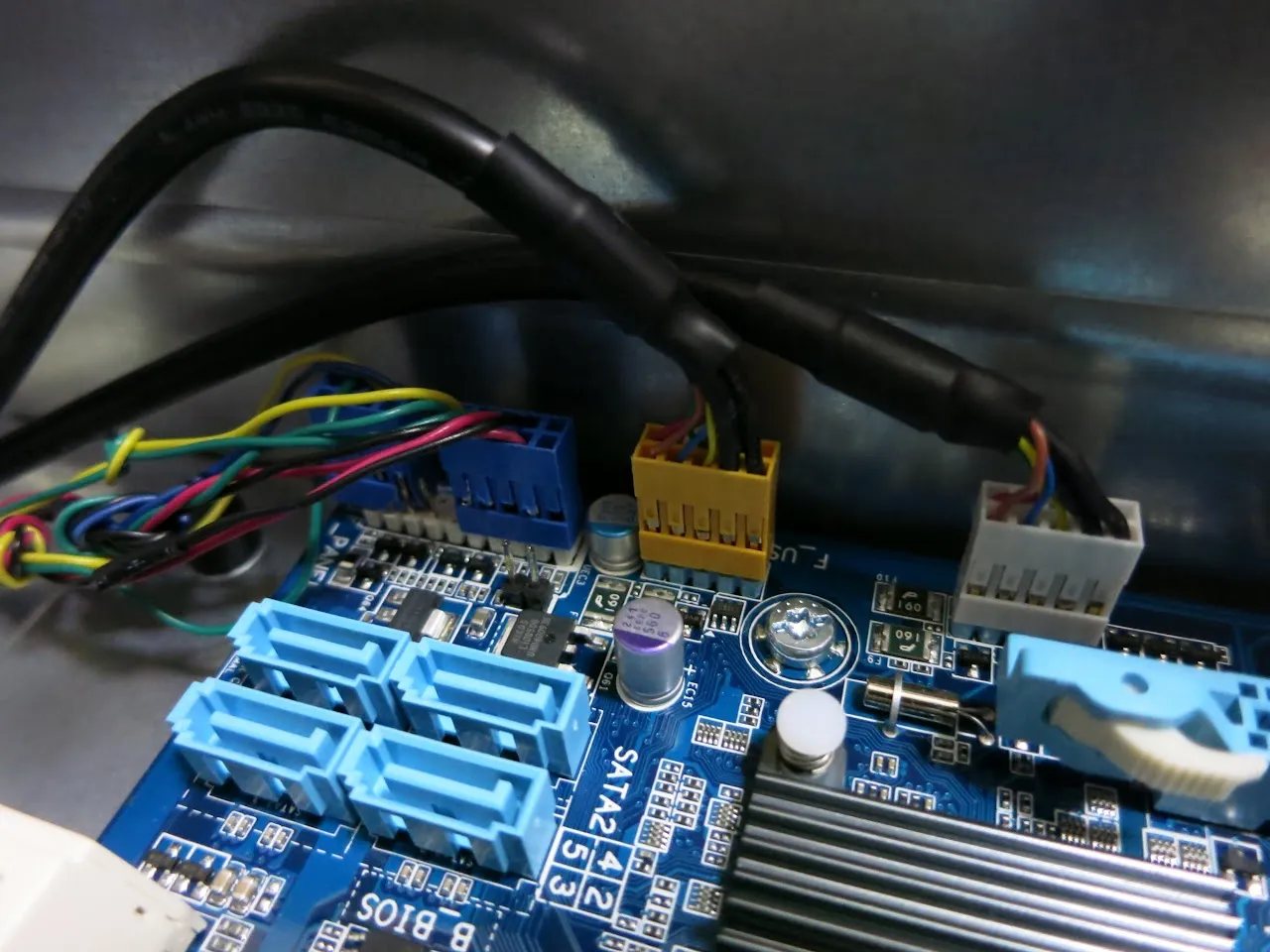 面倒くさいので塞がっているところに穴を開けてマザボに接続しました。