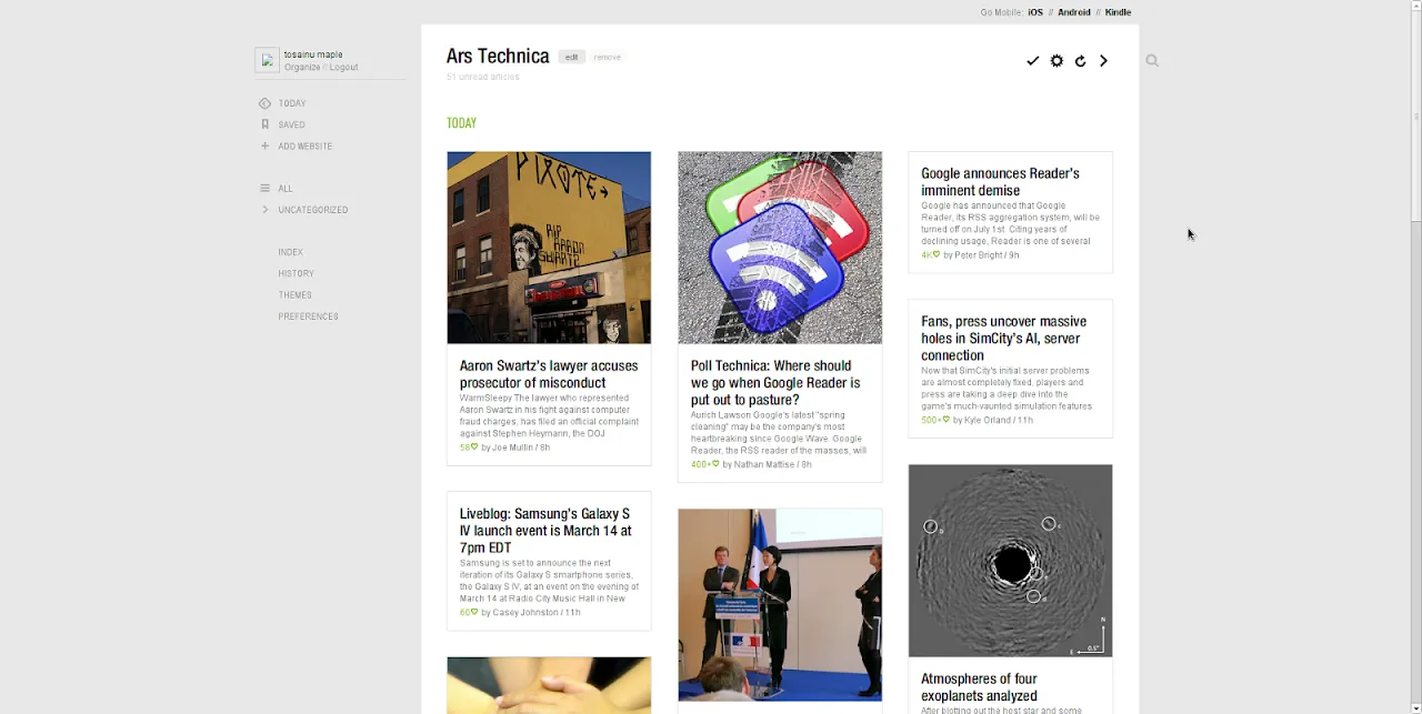 しかし、Android等の専用アプリはなく、ブラウザでNetVibesのサイトにアクセスする必要があるっぽい。