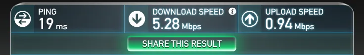 下りの契約が約15Mbps、上りが約1Mbpsなので、まあまあな方でしょうか。