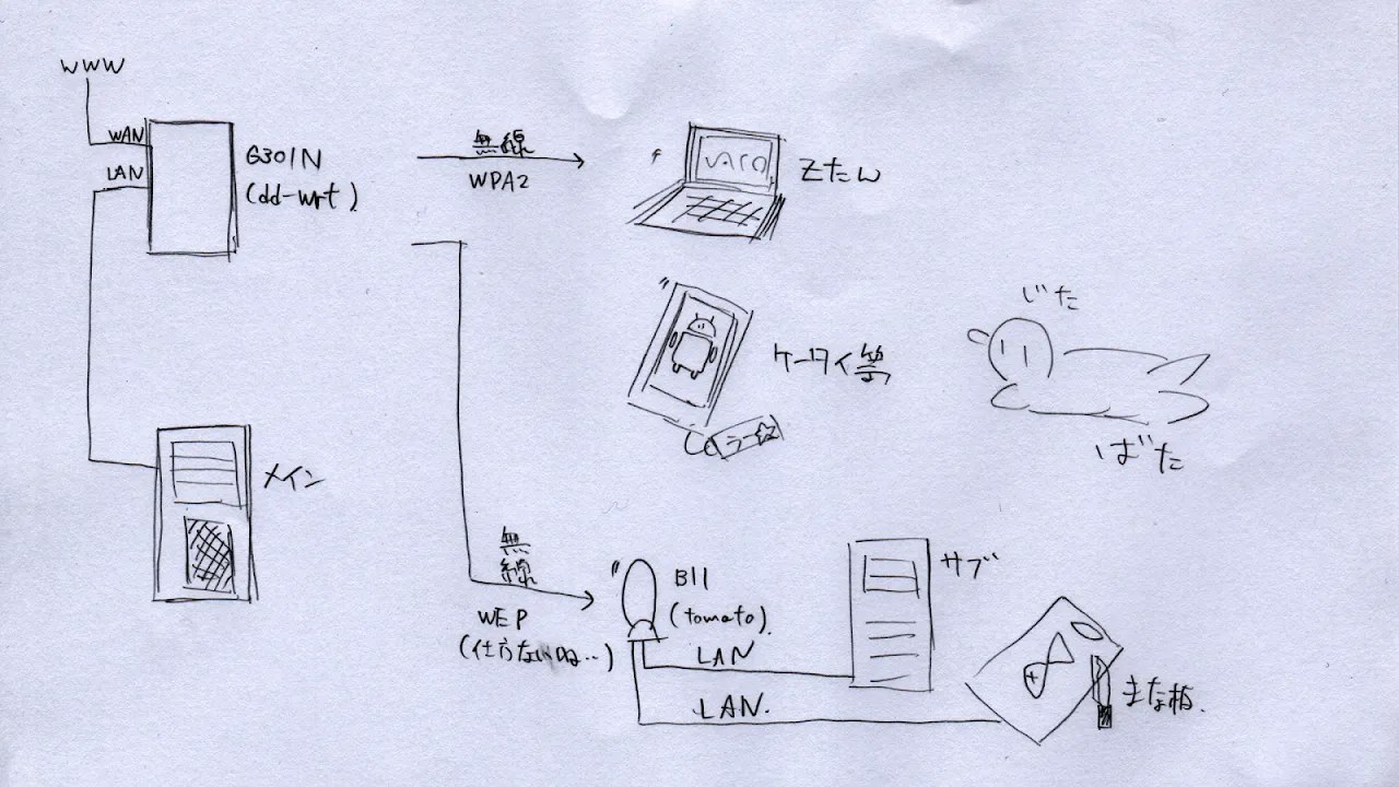 親ルーター:Buffalo WHR-G301n(FW:dd-wrt LocalIP:192.168.1.1)