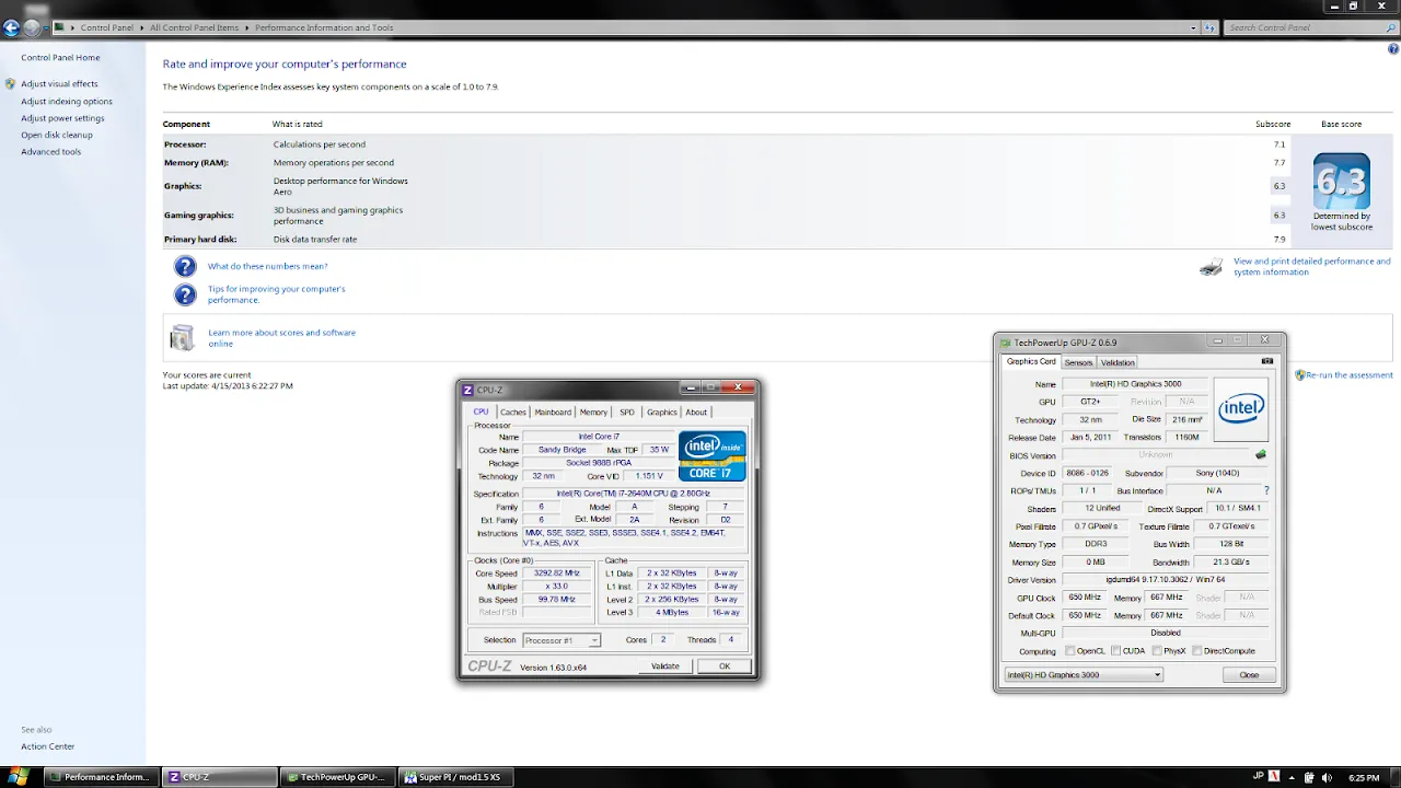 - i7-2640M Max3500MHz(実際3.34GHzくらいまでしか上がらない)