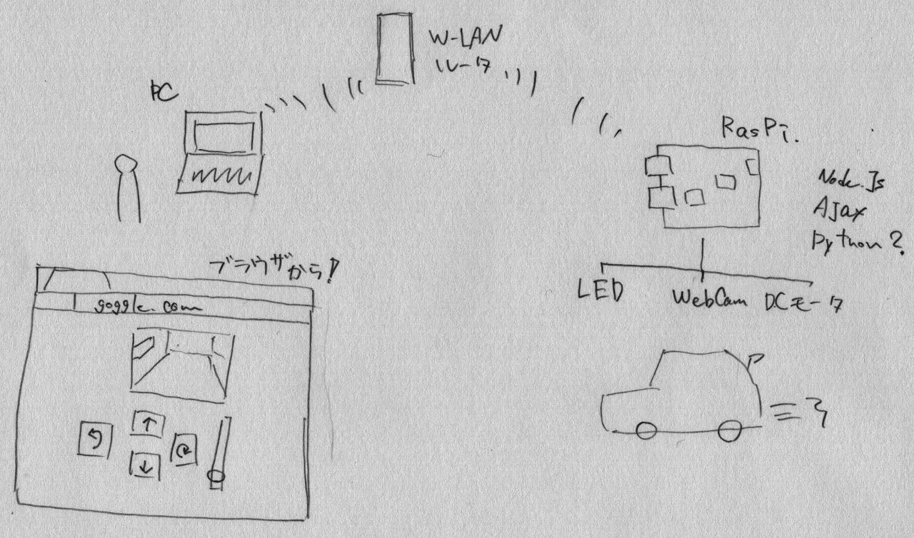 ただ操縦するだけでは面白くないのでWebCamを載せストリーミング、Webアプリを動かして外部のPCからブラウザ上で操縦できるようにしてみようかと。