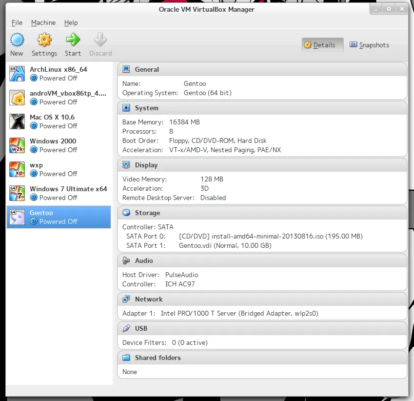 ちょうど予備のHDDがすべて使用中だったため、Virtualboxで作成した仮想マシンにインストールしました。