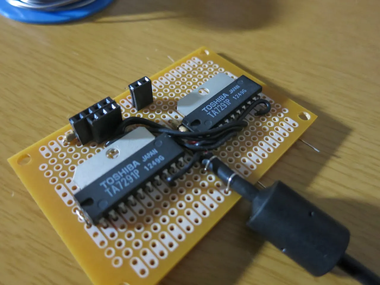 RPiから給電できる電力には限界があるため、TA7291Pを2つ使用しモータドライバ回路を作成しました。