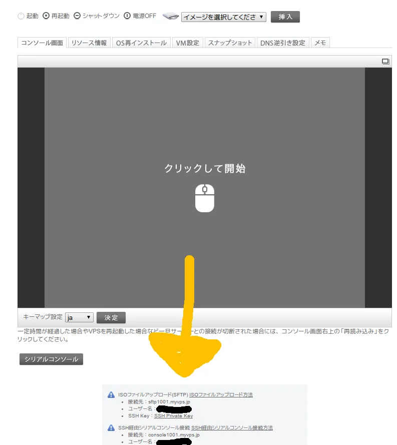 コンソール画面下に接続方法が書いてあるのでFileZilla等で接続して、